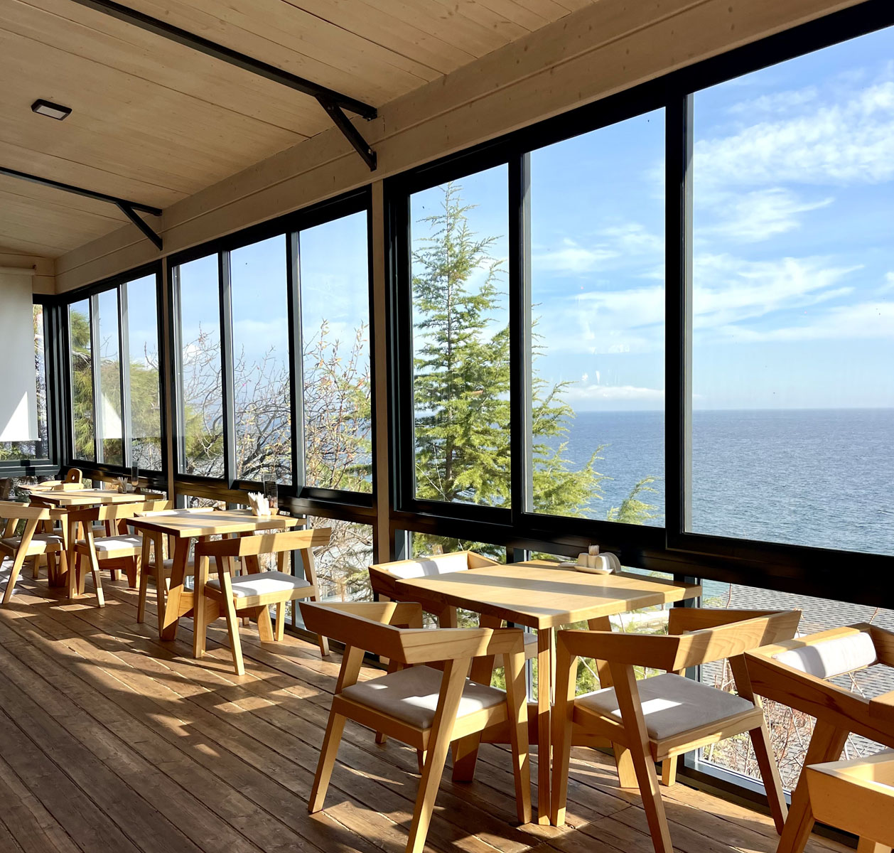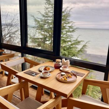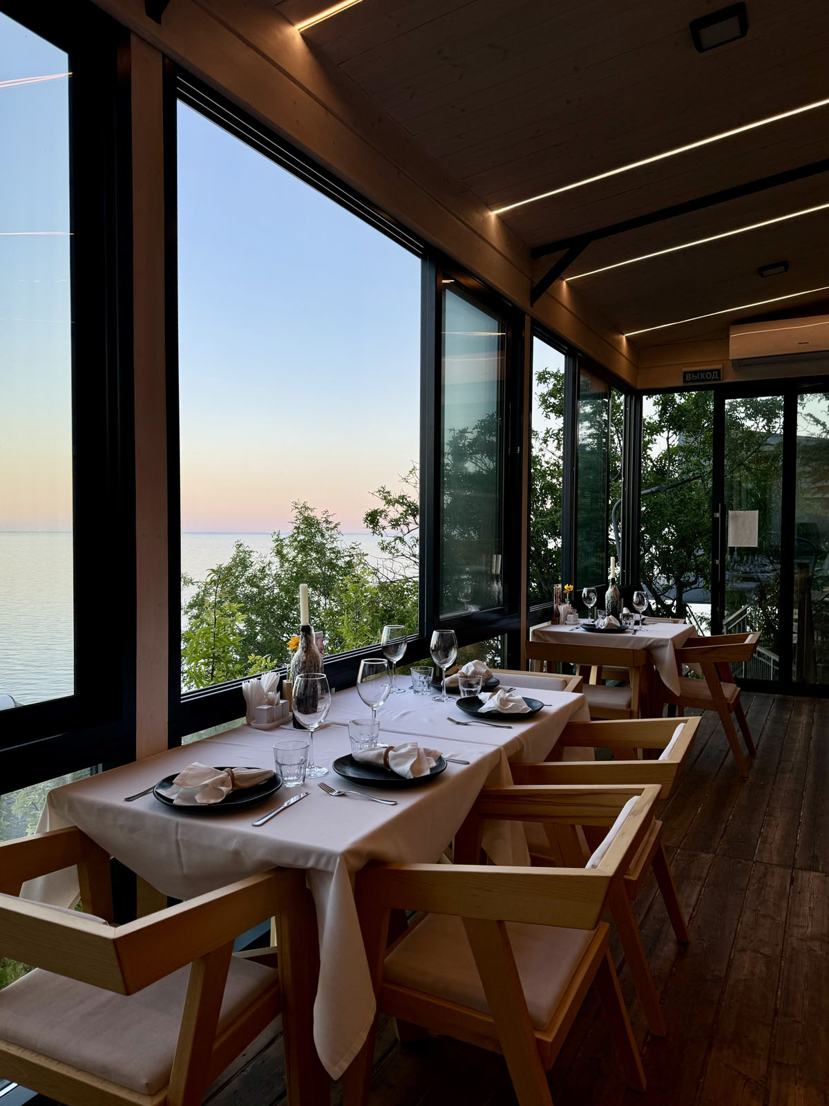 Место красивое, в сосновом лесу. Завтраки также.. Деревянные домики среди еловых деревьев .В домиках есть все необходимое: двуспальная кровать, телевизор, wi-fi, кондиционер, столик с чайными принадлежностями, одноразовые салфетки, мини-холодильник, шкаф, сушилка, сейф, в ванной комнате: душевая кабина, зубной набор, бритвенный набор, швейный, шапочка для душа, шампунь, гель д/душа. Есть так же балкон, столик и стулья. Данный отель новый, поэтому ремонт в домиках "свежий", стильный. Прекрасный вид на море, чисто, убирают хорошо и часто). Персонал замечательный. Были в августе, у ребенка было день рождения пришли поздравили. Спасибо за отдых, обязательно снова к вам приедем!!!!