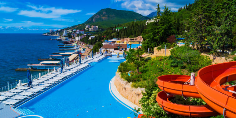 ПосмотретьКурортный комплекс «Миндальная роща» единственный в Крыму отель с бассейном и аквапарком по системе «все включено». Мы предлагаем доступный отдых с ух