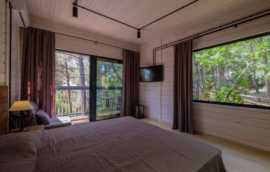 ПосмотретьБанный комплекс эко-отеля «Бунгало Билл» Для гостей эко-отеля «Бунгало Билл» предоставляется бесплатное посещение финской сауны с панорамными окнам